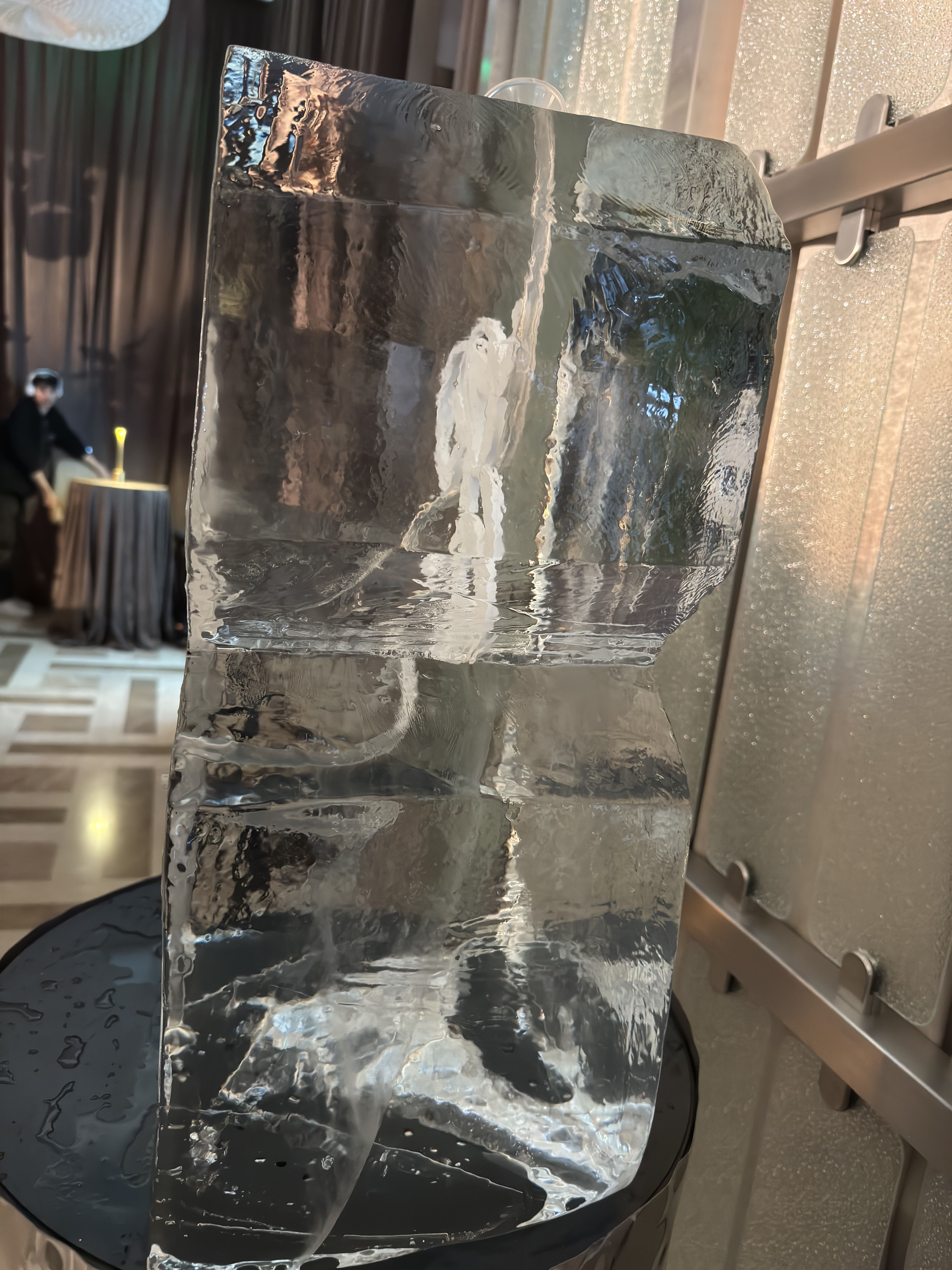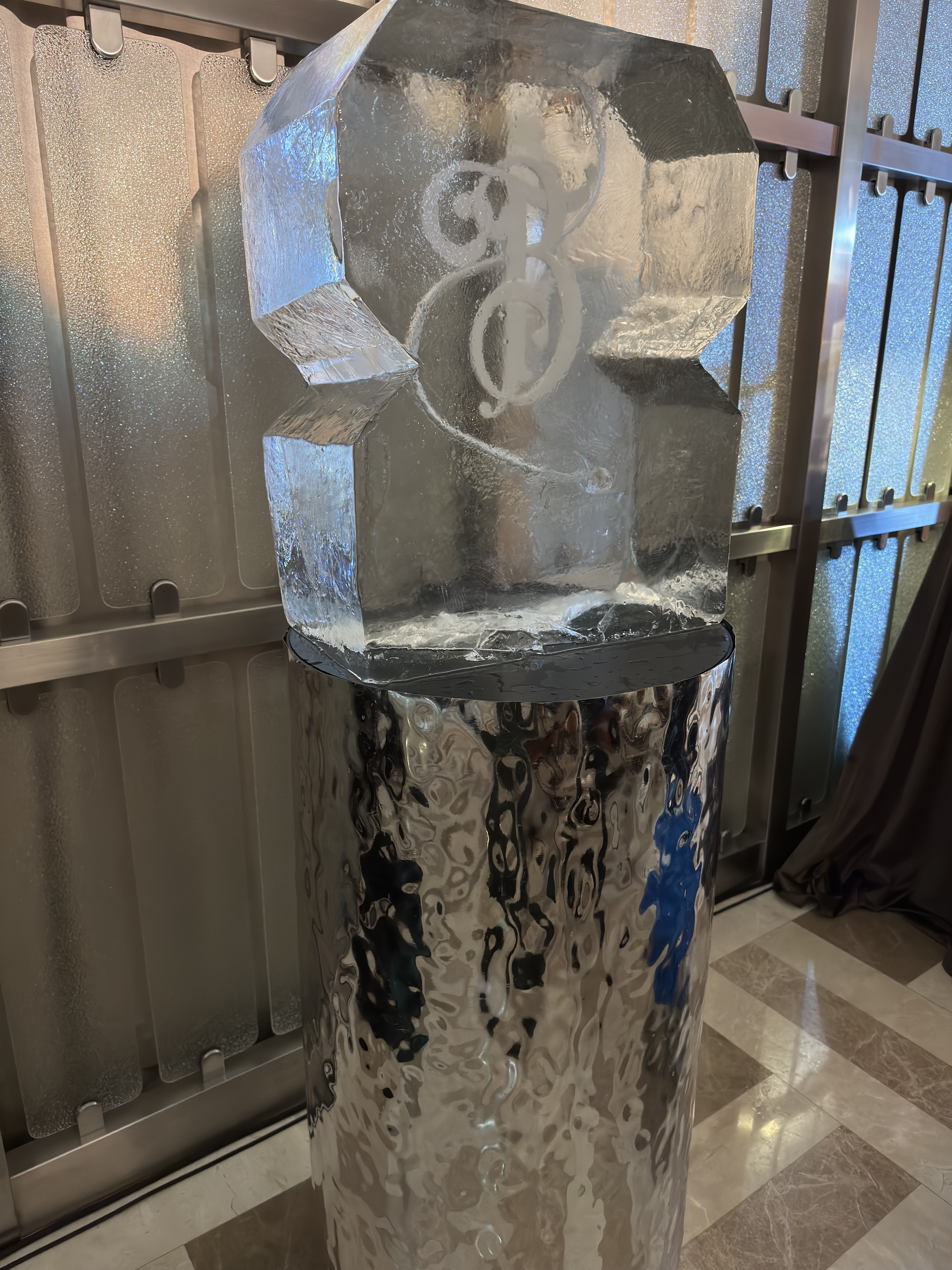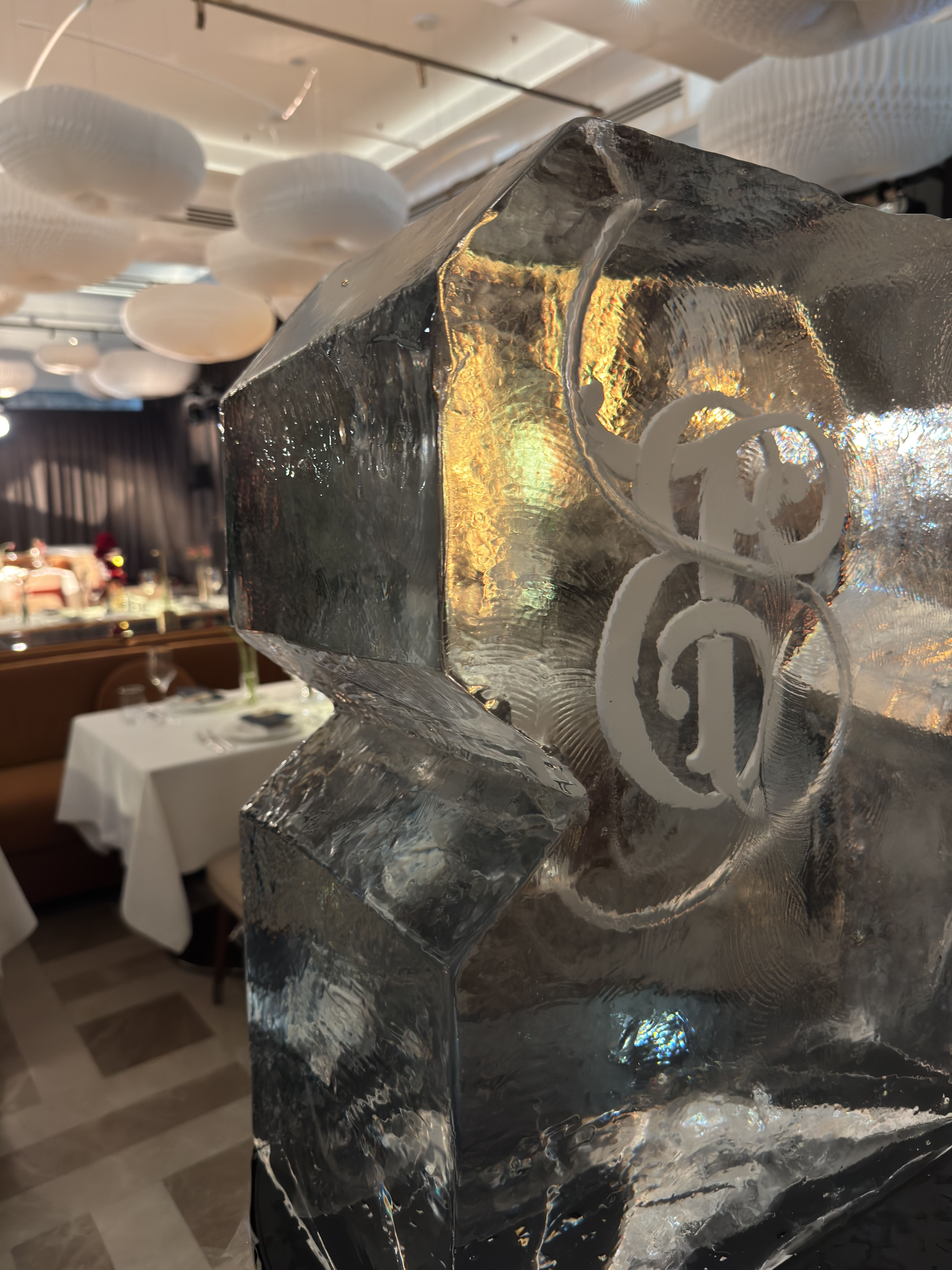 - Статус: Ледяная скульптура с логотипом подчеркивает масштаб бренда и внимание к деталям.
